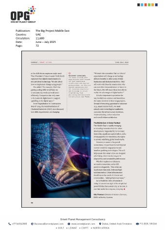 Publication: The Big Project Middle East Country: UAE Circulation: 11,680 Date: June – July 2025 Page: 72