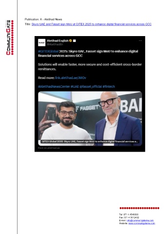 Publication: X - Aletihad News Title: Skyro UAE and Fasset sign MoU at GITEX 2025 to enhance digital financial services across GCC Tel: 971 4 4546093 Fax: 971 4 3612432 E-mail: info@communigateme.com Website: www.communigateme.com