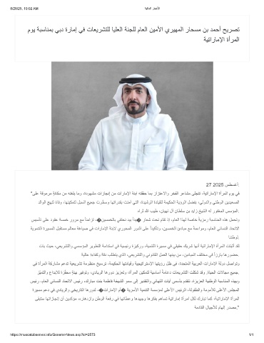 موﯾ ﺔﺑﺳﺎﻧﻣﺑ ﻲﺑد ةرﺎﻣإ ﻲﻓ تﺎﻌﯾرﺷﺗﻠﻟ ﺎﯾﻠﻌﻟا ﺔﻧﺟﻠﻟ مﺎﻌﻟا نﯾﻣﻷا يرﯾﮭﻣﻟا رﺎﺣﺳﻣ نﺑ دﻣﺣأ ﺢﯾرﺻﺗ