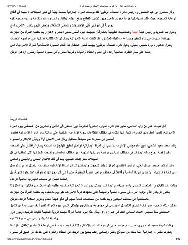 عﺎطﻗ ﻲﻓ ﺎﻣّﯾﺳ ﻻ تﻻﺎﺟﻣﻟا ﻰﺗﺷ ﻲﻓ ﺔﱠﯾﻠﺟ ﺔﻣﺻﺑ ﺔﯾﺗارﺎﻣﻹا ةأرﻣﻟا تﻌﺿو دﻘﻟ :ﻲﺑظوﺑأ -ﺔﺣﺻﻟا ةرﺋاد سﯾﺋر ،يروﺻﻧﻣﻟا مﯾھارﺑإ روﺻﻧﻣ لﺎﻗو