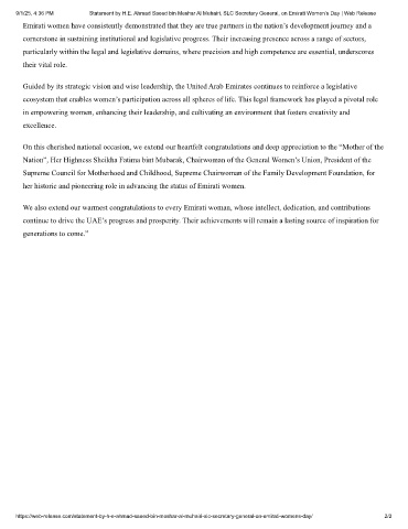 9/1/25, 4:36 PM Statement by H.E. Ahmad Saeed bin Meshar Al Muhairi, SLC Secretary General, on Emirati Women’s Day | Web Release