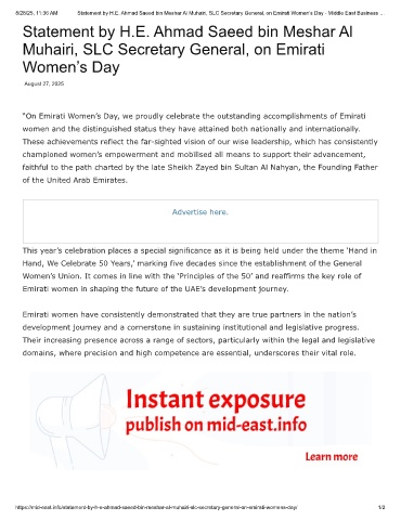 8/28/25, 11:36 AM Statement by H.E. Ahmad Saeed bin Meshar Al Muhairi, SLC Secretary General, on Emirati Women’s Day - Middle East Business …
