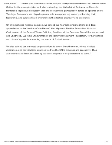 8/28/25, 11:36 AM Statement by H.E. Ahmad Saeed bin Meshar Al Muhairi, SLC Secretary General, on Emirati Women’s Day - Middle East Business …