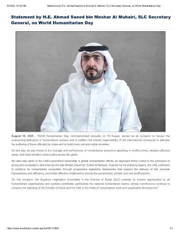 8/19/25, 10:36 AM Statement by H.E. Ahmad Saeed bin Meshar Al Muhairi, SLC Secretary General, on World Humanitarian Day