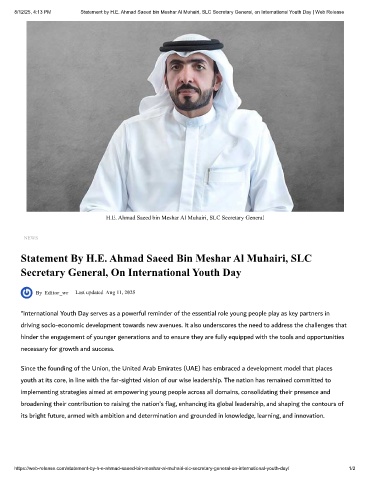 8/12/25, 4:13 PM Statement by H.E. Ahmad Saeed bin Meshar Al Muhairi, SLC Secretary General, on International Youth Day | Web Release
