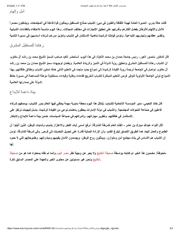 ءﺎﻛرﺷ مﮭﻔﺻوﺑ ،بﺎﺑﺷﻟا رودﺑ مﻟﺎﻌﻟا ﺎﮭﯾﻓ ﻲﻔﺗﺣﯾ ﺔﻣﮭﻣ ﺔﯾوﻧﺳ ﺔطﺣﻣ موﯾﻟا اذھ لّﻛﺷُﯾ :بﺎﺑﺷﻠﻟ ﺔﯾدﺎﺣﺗﻻا ﺔﺳﺳؤﻣﻟا رﯾدﻣ ،ﻲﻣﯾﻌﻧﻟا دﻟﺎﺧ لﺎﻗ