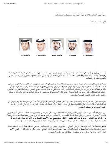 ةدﺎﯿﻘﻟاو رﺎﻜﺘﺑﻻا ﻰﻠﻋ ﻢﮭﺗرﺪﻗ تارﺎﻣﻹا بﺎﺒﺷ ﺖﺒﺛأ ﺪﻗو ،ﺔﻟوﺪﻟاو ةرﺎﻣﻹا ﻞﺒﻘﺘﺴﻣ ﻲﻓ رﺎﻤﺜﺘﺳا ﻢﮭﺗﺎﻗﺎط رﺎﻤﺜﺘﺳاو بﺎﺒﺸﻟا ﻦﯿﻜﻤﺗ نﺄﺑ ﺔﺌﯿﮭﻟا