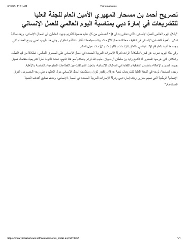 ﻲﻧﺎﺳﻧﻹا لﻣﻌﻠﻟ ﻲﻣﻟﺎﻌﻟا موﯾﻟا ﺔﺑﺳﺎﻧﻣﺑ ﻲﺑد ةرﺎﻣإ ﻲﻓ تﺎﻌﯾرﺷﺗﻠﻟ