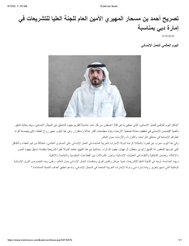رﯾﻛذﺗ ﺔﺑﺎﺛﻣﺑ دﻌﯾو ،ﻲﻧﺎﺳﻧﻹا لﺎﺟﻣﻟا ﻲﻓ نﯾﻠﻣﺎﻌﻟا دوﮭﺟ مﯾرﻛﺗﻟ ﺔﺑﺳﺎﻧﻣ ،مﺎﻋ لﻛ نﻣ سطﺳﻏأ 19 ﻲﻓ ﮫﺑ ﻲﻔﺗﺣﻧ يذﻟا ،ﻲﻧﺎﺳﻧﻹا لﻣﻌﻠﻟ ﻲﻣﻟﺎﻌﻟا موﯾﻟا لﻛﺷﯾ"