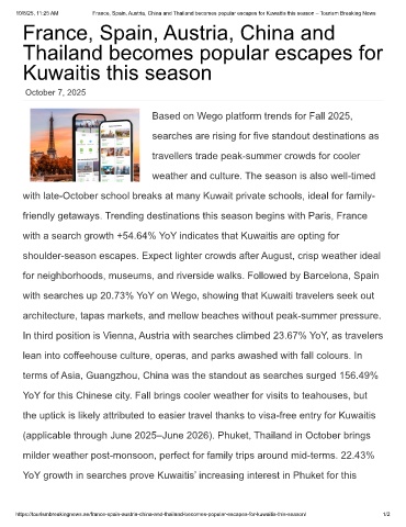 10/8/25, 11:25 AM France, Spain, Austria, China and Thailand becomes popular escapes for Kuwaitis this season – Tourism Breaking News