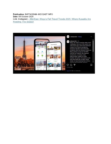 Publication: INSTAGRAM- MID EAST INFO Date: 08 October 2025 Link: Instagram - Mid-East: Wego’s Fall Travel Trends 2025: Where Kuwaitis Are Heading This Season