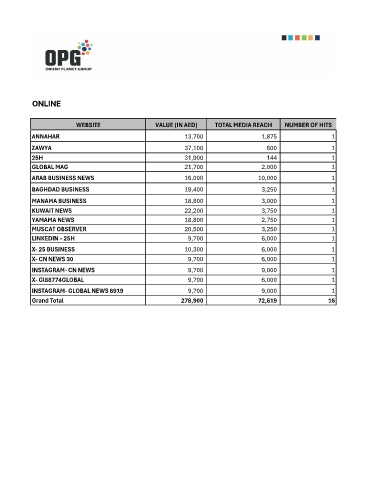 WEBSITE VALUE (IN AED) TOTAL MEDIA REACH NUMBER OF HITS