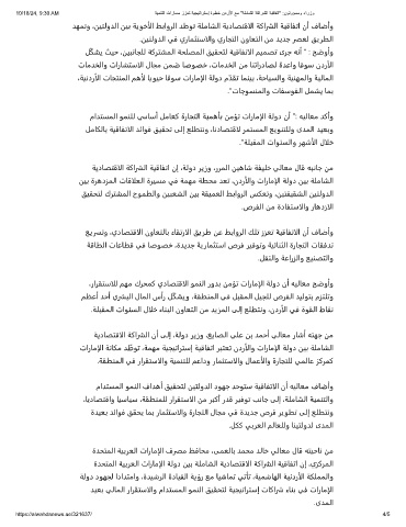 10/18/24, 9:30 AM ﺔﯾﻣﻧﺗﻟا تارﺎﺳﻣ ززﻌﺗ ﺔﯾﺟﯾﺗارﺗﺳإ ةوطﺧ ندرﻷا ﻊﻣ "ﺔﻠﻣﺎﺷﻟا ﺔﻛارﺷﻟا ﺔﯾﻗﺎﻔﺗا" :نوﻟوؤﺳﻣو ءارزو