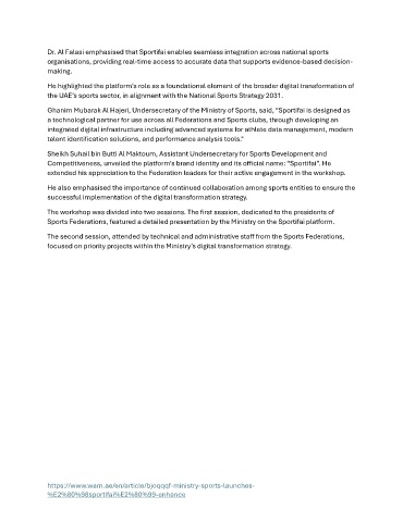 Dr. Al Falasi emphasised that Sportifai enables seamless integration across national sports