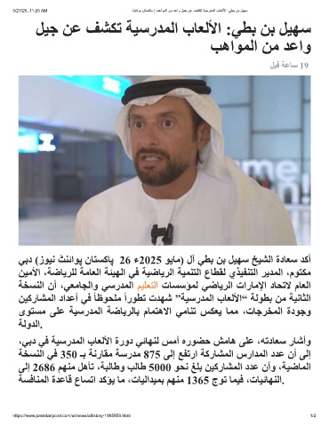 ،ﻲﺑد ﻲﻓ ﺔﯿﺳرﺪﻤﻟا بﺎﻌﻟﻷا ةرود ﻲﺋﺎﮭﻨﻟ ﺲﻣأ هرﻮﻀﺣ ﺶﻣﺎھ ﻰﻠﻋ ،ﮫﺗدﺎﻌﺳ رﺎﺷأو