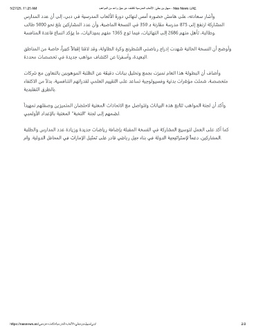سراﺪﻤﻟا دﺪﻋ نأ ﻰﻟإ ،ﻲﺑد ﻲﻓ ﺔﻴﺳرﺪﻤﻟا بﺎﻌﻟألا ةرود ﻲﺋﺎﻬﻨﻟ ﺲﻣأ هرﻮﻀﺣ ﺶﻣﺎﻫ ﻰﻠﻋ ،ﻪﺗدﺎﻌﺳ رﺎﺷأو
