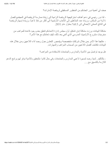 ﺔﺿﺎﯾﺮﻟا مﺎﮭﺳإ ةدﺎﯾزو ،ﺎﺒﻋﻻ 30 ﻦﻣ ﺮﺜﻛأ ﻰﻟإ ﺔﯿﺒﻤﻟوﻷا بﺎﻌﻟﻷا ﻰﻟإ ﻦﯿﻠھﺄﺘﻤﻟا دﺪﻋ ةدﺎﯾزو ،نﺎﻜﺴﻟا ﻦﻣ %71