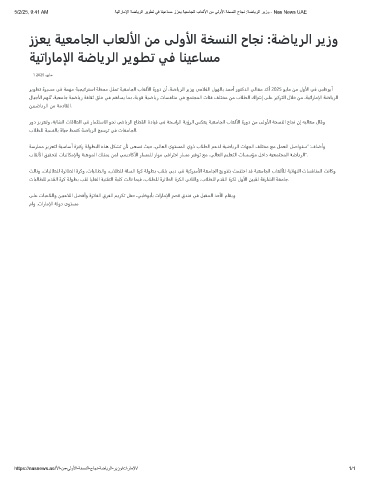 5/2/25, 9:41 AM ﺔﯾﺗارﺎﻣﻹا ﺔﺿﺎﯾرﻟا رﯾوطﺗ ﻲﻓ ﺎﻧﯾﻋﺎﺳﻣ ززﻌﯾ ﺔﯾﻌﻣﺎﺟﻟا بﺎﻌﻟﻷا نﻣ ﻰﻟوﻷا ﺔﺧﺳﻧﻟا حﺎﺟﻧ :ﺔﺿﺎﯾرﻟا رﯾزو - Nas News UAE