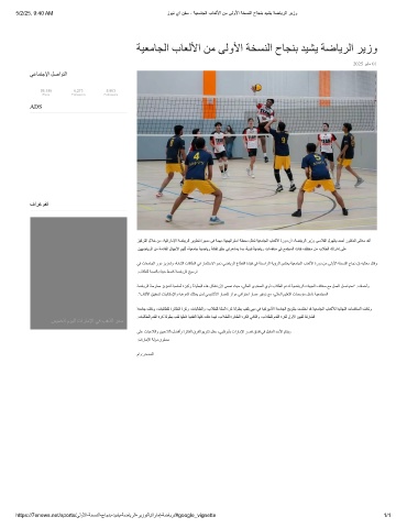 ﺔﯿﻌﻣﺎﺠﻟا بﺎﻌﻟﻷا ﻦﻣ ﻰﻟوﻷا ﺔﺨﺴﻨﻟا حﺎﺠﻨﺑ ﺪﯿﺸﯾ ﺔﺿﺎﯾﺮﻟا ﺮﯾزو