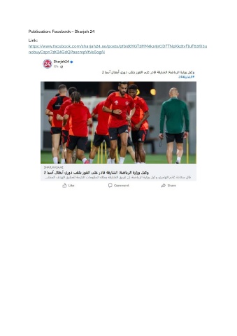 Publication: Facebook – Sharjah 24 Link: https://www.facebook.com/sharjah24.ae/posts/pfbid0YGT3HM4kz4jrCDFTNpKkdtvFJuF63fX3u nobuyCzpn7zK24GdQPascmpVtVe5ogAl