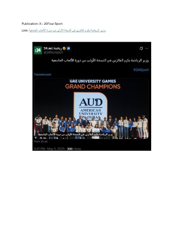 Publication: X – 20Four Sport Link: ةيعماجلا باعللأا ةرود نم ىلولأا ةخسنلا يف نيزئافلا مركي ةضايرلا ريزو