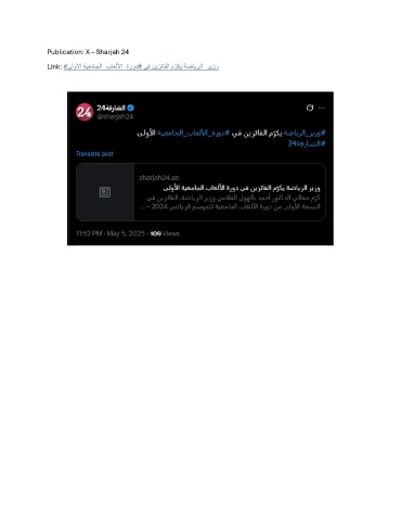Publication: X – Sharjah 24 Link: # ىلولأا ةيعماجلا_باعللأا_ةرود# يف نيزئافلا م ّ ركي ةضايرلا_ريزو