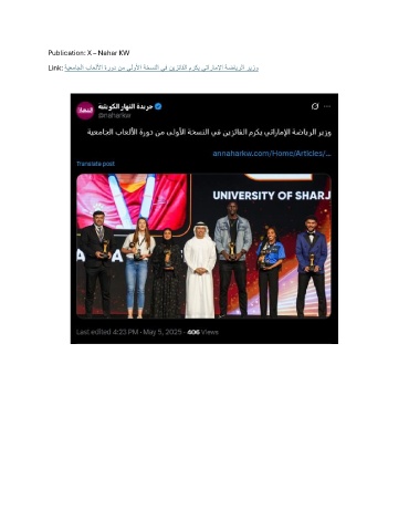 Publication: X – Nahar KW Link: ةيعماجلا باعللأا ةرود نم ىلولأا ةخسنلا يف نيزئافلا مركي يتاراملإا ةضايرلا ريزو