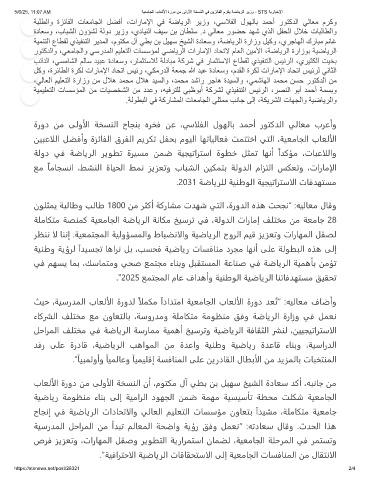 .”2025 ﻊﻤﺘﺠﻤﻟا مﺎﻋ فاﺪﻫأو ﺔﻴﻨﻃﻮﻟا ﺔﻴﺿﺎﻳﺮﻟا ﺎﻨﺗﺎﻓﺪﻬﺘﺴﻣ ﻖﻴﻘﺤﺗ