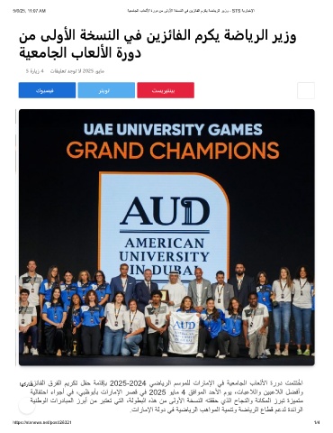 5/6/25, 11:07 AM ﺔﯾﻌﻣﺎﺟﻟا بﺎﻌﻟﻷا ةرود نﻣ ﻰﻟوﻷا ﺔﺧﺳﻧﻟا ﻲﻓ نﯾزﺋﺎﻔﻟا مرﻛﯾ ﺔﺿﺎﯾرﻟا رﯾزو - STS ﺔﯾرﺎﺑﺧﻹا