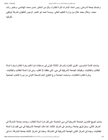 ﺔﯾﻌﻣﺎﺟﻟا بﺎﻌﻟﻷا ةرود نﻣ ﻰﻟوﻷا ﺔﺧﺳﻧﻠﻟ مﺎﻌﻟا قوﻔﺗﻟا عرد ﺔﻌﻣﺎﺟﻟا تﻣﻠﺳﺗو ،تﺎﺑﻟﺎطﻠﻟ ةرﺋﺎطﻟا ةرﻛو.