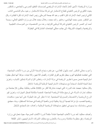 رﻮﺘﻛﺪﻟاو ،ﻲﻌﻣﺎﺠﻟاو ﻲﺳرﺪﻤﻟا ﻢﯿﻠﻌﺘﻟا تﺎﺴﺳﺆﻤﻟ ﻲﺿﺎﯾﺮﻟا تارﺎﻣﻹا دﺎﺤﺗﻻ مﺎﻌﻟا ﻦﯿﻣﻷا ،ﺔﺿﺎﯾﺮﻟا ةرازﻮﺑ