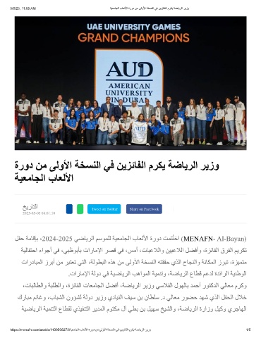 ﻞﻔﺣ ﺔﻣﺎﻗﺈﺑ ،2024-2025 ﻲﺿﺎﯾﺮﻟا ﻢﺳﻮﻤﻠﻟ ﺔﯿﻌﻣﺎﺠﻟا بﺎﻌﻟﻷا ةرود ﺖﻤﺘُﺘﺧا (MENAFN- Al-Bayan)