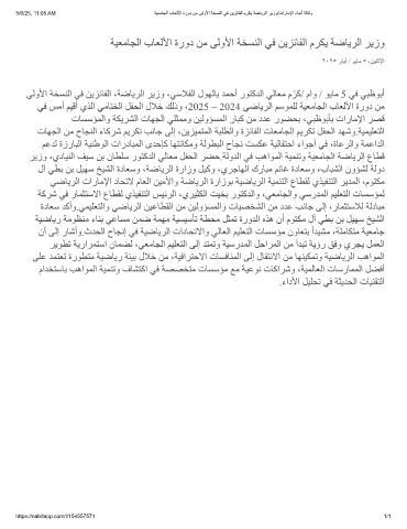 5/6/25, 11:05 AM ﺔﯾﻌﻣﺎﺟﻟا بﺎﻌﻟﻷا ةرود نﻣ ﻰﻟوﻷا ﺔﺧﺳﻧﻟا ﻲﻓ نﯾزﺋﺎﻔﻟا مرﻛﯾ ﺔﺿﺎﯾرﻟا رﯾزو/تارﺎﻣﻹا ءﺎﺑﻧأ ﺔﻟﺎﻛو