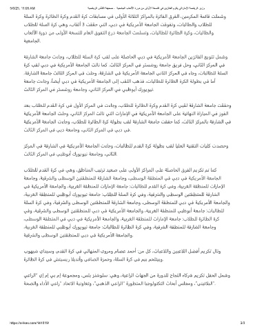 بالﻄﻠﻟ ﺔﻠﺴﻟا ةﺮﻛ ﻲﻫو ،بﺎﻘﻟأ 3 ﺖﻘﻘﺣ ﻲﺘﻟا ،ﻲﺑد ﻲﻓ ﺔﻴﻜﻳﺮﻣألا ﺔﻌﻣﺎﺠﻟا ﺖﻗﻮﻔﺗو ،تﺎﺒﻟﺎﻄﻟاو بالﻄﻠﻟ