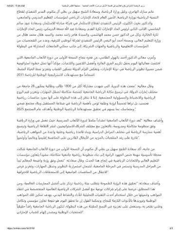 2025 ﻊﻤﺘﺠﻤﻟا مﺎﻋ فاﺪﻫأو ﺔﻴﻨﻃﻮﻟا ﺔﻴﺿﺎﻳﺮﻟا ﺎﻨﺗﺎﻓﺪﻬﺘﺴﻣ ﻖﻴﻘﺤﺗ ﻲﻓ ﻢﻬﺴﻳ ﺎﻤﺑ ،ﻚﺳﺎﻤﺘﻣو.”