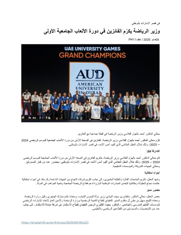 . يبظوبأب تاراملإا رصق يف ،دحلأا سمأ ،ميقأ يذلا يماتخلا لفحلا للاخ كلذو ، 2025 –