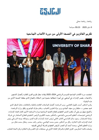 ﻦﻴﺒﻋﻼﻟا ﻞﻀﻓأو ةﺰﺋﺎﻔﻟا قﺮﻔﻟا ﻢﻳﺮﺗ ﻞﻔﺣ ﺔﻣﺎﻗﺈﺑ 2025-2024 ﺿﺎﻳﺮﻟا ﻢﺳﻮﻤﻠﻟ ﺔﻴﻌﻣﺎﺠﻟا بﺎﻌﻟﻷا ةرود ﺖﻤﺘﺘﺧا