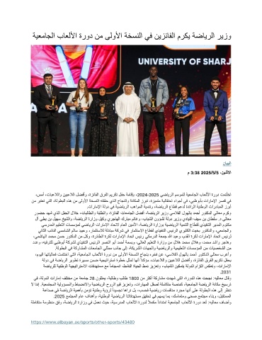 ،سمأ ،تابعلالاو نيبعلالا لضفأو ،ةزئافلا قرفلا ميركت لفح ةماقإب ، 2024 - 2025 يضايرلا مسوملل ةيعماجلا باعللأا ةرود تمتُتخا