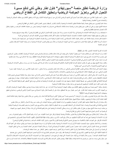 نﯾﯾﺿﺎﯾرﻟا رﯾوطﺗو فﺎﺷﺗﻛاو ﺔﯾﺿﺎﯾرﻟا ﺔﻣﻛوﺣﻟا زﯾزﻌﺗ ﻲﻓ مھﺎﺳﯾ طﺑارﺗﻣو لﻣﺎﻛﺗﻣ مﺎظﻧ ءﺎﺷﻧإ ﻰﻟإ فدﮭﺗ ﻲﺗﻟاو ،ﺔﯾﻣﻗرﻟا ”يﺎﻔﯾﺗروﺑﺳ“ ﺔﺻﻧﻣ قﻼطإ نﻋ موﯾﻟا ﺔﺿﺎﯾرﻟا ةرازو تﻧﻠﻋأ