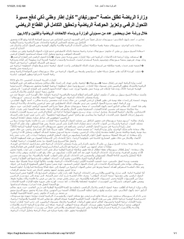 ﻢﻋدو ﺔﯿﺿﺎﻳﺮﻟا ﺔﻤﻛﻮﺤﻟا ﺰﻳﺰﻌﺘﻟ يﺎﻔﯿﺗرﻮﺒﺳ لﻼﺧ ﻦﻣ ﺔﯿﺿﺎﻳﺮﻟا تﺎﮫﺠﻟا ﻦﯿﺑ ﺔﻌﺳاو ﻲﺠﯿﺗاﺮﺘﺳا نوﺎﻌﺗ ﺔﻜﺒﺷ ﻞﯿﻌﻔﺗ ﻰﻠﻋ ﺪﯿﻛﺄﺘﻟا ﺔﺷرﻮﻟا ﺖﻟوﺎﻨﺗ �