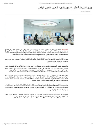 5/16/25, 9:40 AM 7 تارﺎﻣﻻا | ﺔﺿﺎﯾر | ﻲﻣﻗرﻟا لوﺣﺗﻟا زﯾزﻌﺗﻟ "يﺎﻔﯾﺗروﺑﺳ" ﻖﻠطﺗ ﺔﺿﺎﯾرﻟا ةرازو