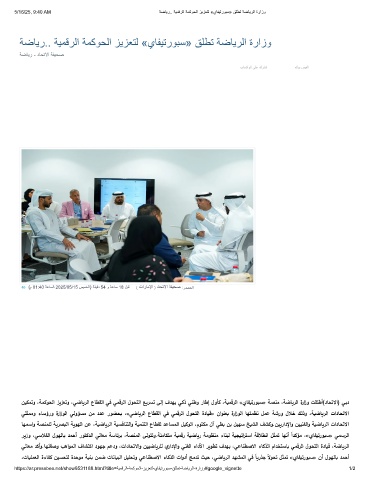 5/16/25, 9:40 AM ﺔﺿﺎﯾر.. ﺔﯾﻣﻗرﻟا ﺔﻣﻛوﺣﻟا زﯾزﻌﺗﻟ «يﺎﻔﯾﺗروﺑﺳ» ﻖﻠطﺗ ﺔﺿﺎﯾرﻟا ةرازو