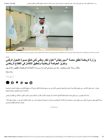 5/16/25, 9:39 AM ﻲﺿﺎﯾرﻟا عﺎطﻘﻟا ﻲﻓ لﻣﺎﻛﺗﻟا ﻖﯾﻘﺣﺗو ﺔﯾﺿﺎﯾرﻟا ﺔﻣﻛوﺣﻟا زﯾزﻌﺗو ﻲﻣﻗرﻟا لوﺣﺗﻟا ةرﯾﺳﻣ ﻊﻓدﻟ ﻲﻛذ ﻲﻧطو رﺎطإ لوﺄﻛ "يﺎﻔﯾﺗروﺑﺳ" ﺔﺻﻧﻣ ﻖﻠطﺗ ﺔﺿﺎﯾرﻟا ةرازو