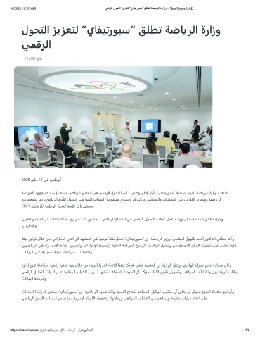 5/16/25, 9:37 AM ﻲﻣﻗرﻟا لوﺣﺗﻟا زﯾزﻌﺗﻟ "يﺎﻔﯾﺗروﺑﺳ" ﻖﻠطﺗ ﺔﺿﺎﯾرﻟا ةرازو - Nas News UAE