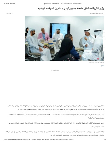 https://www.alkhaleej.ae/2025-05-15/ﺔﺿﺎﯾر/ﻲﻠﺣﻣ-ﺔﺿﺎﯾر/5916096-ﺔﯾﻣﻗرﻟا-ﺔﻣﻛوﺣﻟا-زﯾزﻌﺗﻟ-يﺎﻔﯾﺗروﺑﺳ-ﺔﺻﻧﻣ-ﻖﻠطﺗ-ﺔﺿﺎﯾرﻟا-ةرازو 1/2