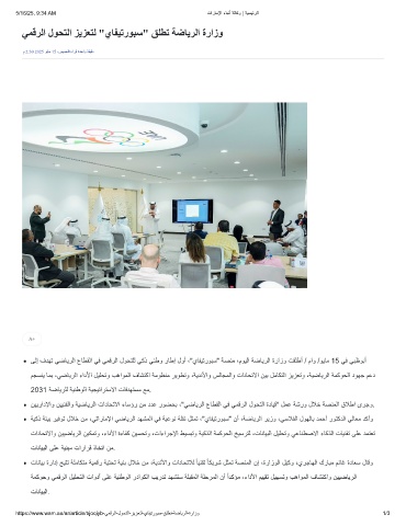 ﻰﻟإ فدﮭﺗ ﻲﺿﺎﯾرﻟا عﺎطﻘﻟا ﻲﻓ ﻲﻣﻗرﻟا لوﺣﺗﻠﻟ ﻲﻛذ ﻲﻧطو رﺎطإ لوأ ،"يﺎﻔﯾﺗروﺑﺳ" ﺔﺻﻧﻣ ،موﯾﻟا ﺔﺿﺎﯾرﻟا ةرازو تﻘﻠطأ / ماو /وﯾﺎﻣ 15 ﻲﻓ ﻲﺑظوﺑأ