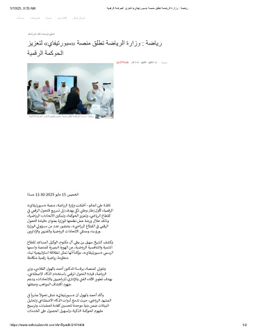 5/19/25, 9:30 AM ﺔﯾﻣﻗرﻟا ﺔﻣﻛوﺣﻟا زﯾزﻌﺗﻟ «يﺎﻔﯾﺗروﺑﺳ» ﺔﺻﻧﻣ ﻖﻠطﺗ ﺔﺿﺎﯾرﻟا ةرازو : ﺔﺿﺎﯾر