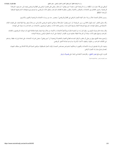 ﺔﻣﻛوﺣﻟا دوﮭﺟ مﻋد ﻰﻟإ فدﮭﺗ ﻲﺿﺎﯾرﻟا عﺎطﻘﻟا ﻲﻓ ﻲﻣﻗرﻟا لوﺣﺗﻠﻟ ﻲﻛذ ﻲﻧطو رﺎطإ لوأ ،”يﺎﻔﯾﺗروﺑﺳ“ ﺔﺻﻧﻣ ،موﯾﻟا ﺔﺿﺎﯾرﻟا ةرازو تﻘﻠطأ / ماو /وﯾﺎﻣ 15 ﻲﻓ ﻲﺑظوﺑأ