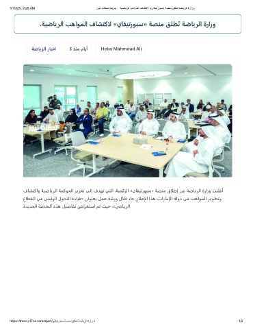 5/19/25, 9:28 AM زوﯾﻧ تﺎظﺣﻟ ةدﯾرﺟ - .ﺔﯾﺿﺎﯾرﻟا بھاوﻣﻟا فﺎﺷﺗﻛﻻ «يﺎﻔﯾﺗروﺑﺳ» ﺔﺻﻧﻣ ﻖﻠطَﺗ ﺔﺿﺎﯾرﻟا ةرازو