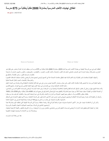 5/21/25, 9:20 AM مﻼﺳﻟا ﺔﻟﺎﺳر – ﺔﺳردﻣ 875 نﻣ ﺔﺑﻟﺎطو ً ﺎﺑﻟﺎط 2686 ﺔﻛرﺎﺷﻣﺑ ﺔﯾﺳردﻣﻟا بﺎﻌﻟﻷا تﺎﯾﺋﺎﮭﻧ قﻼطﻧا